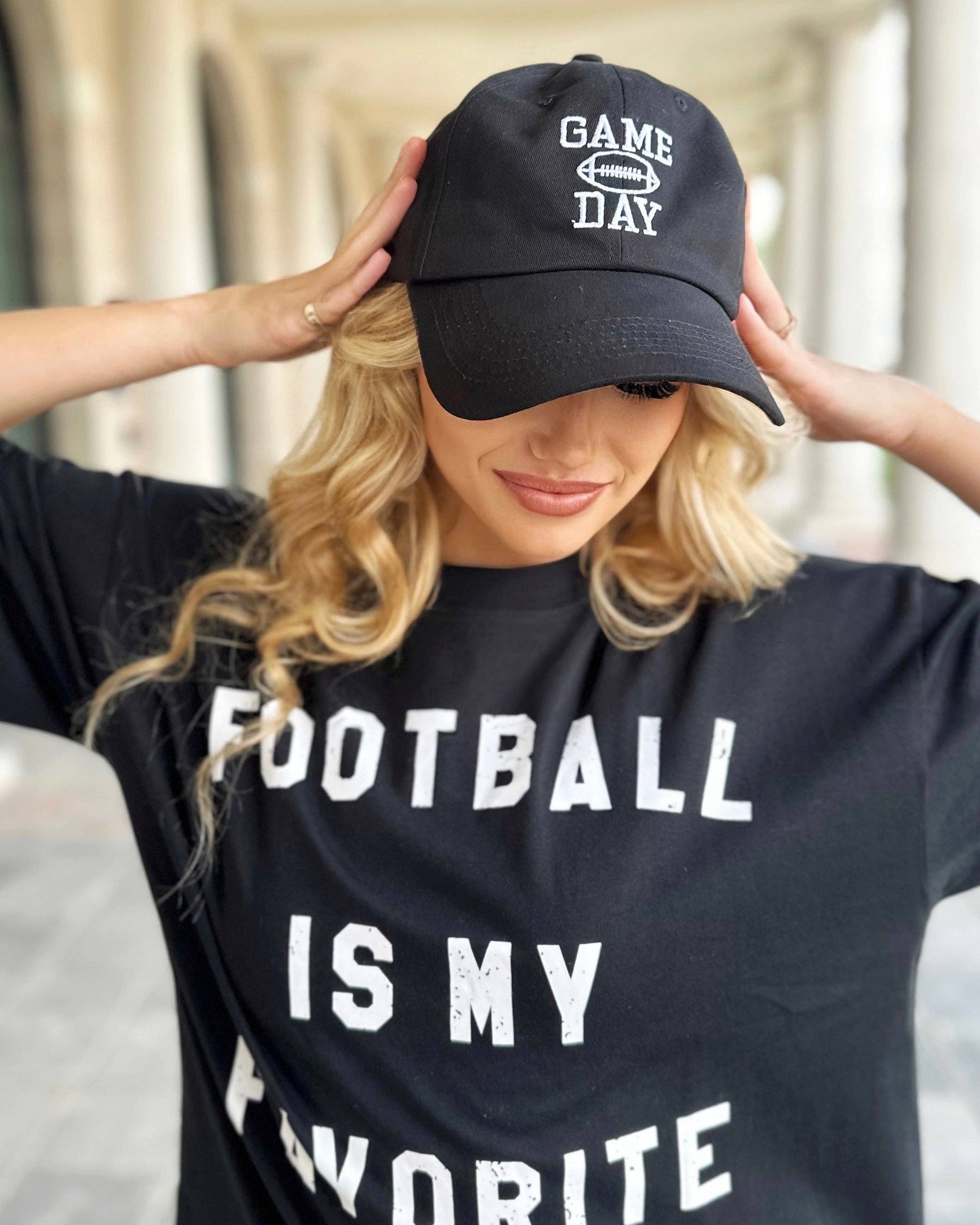 Black Cotton Embroidered “GAME DAY” Football Cap