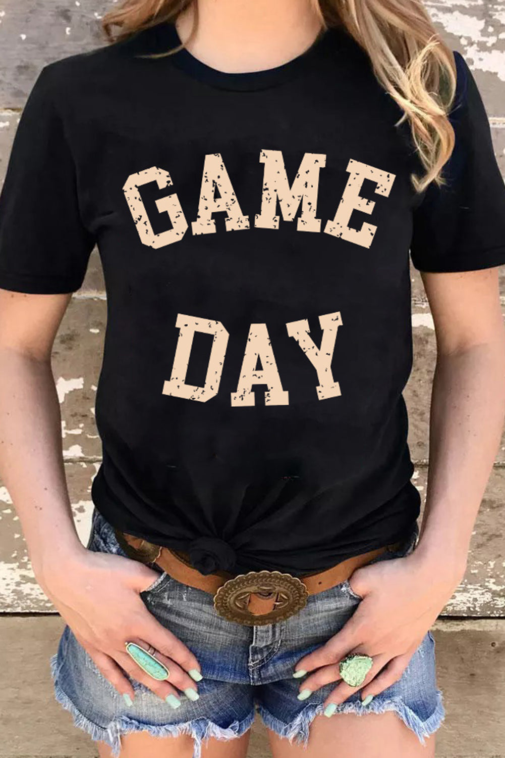 • Elevate your game day style with the Black GAME DAY Crewneck Graphic T-Shirt. Its sleek black color adds a touch of sophistication to your look.
