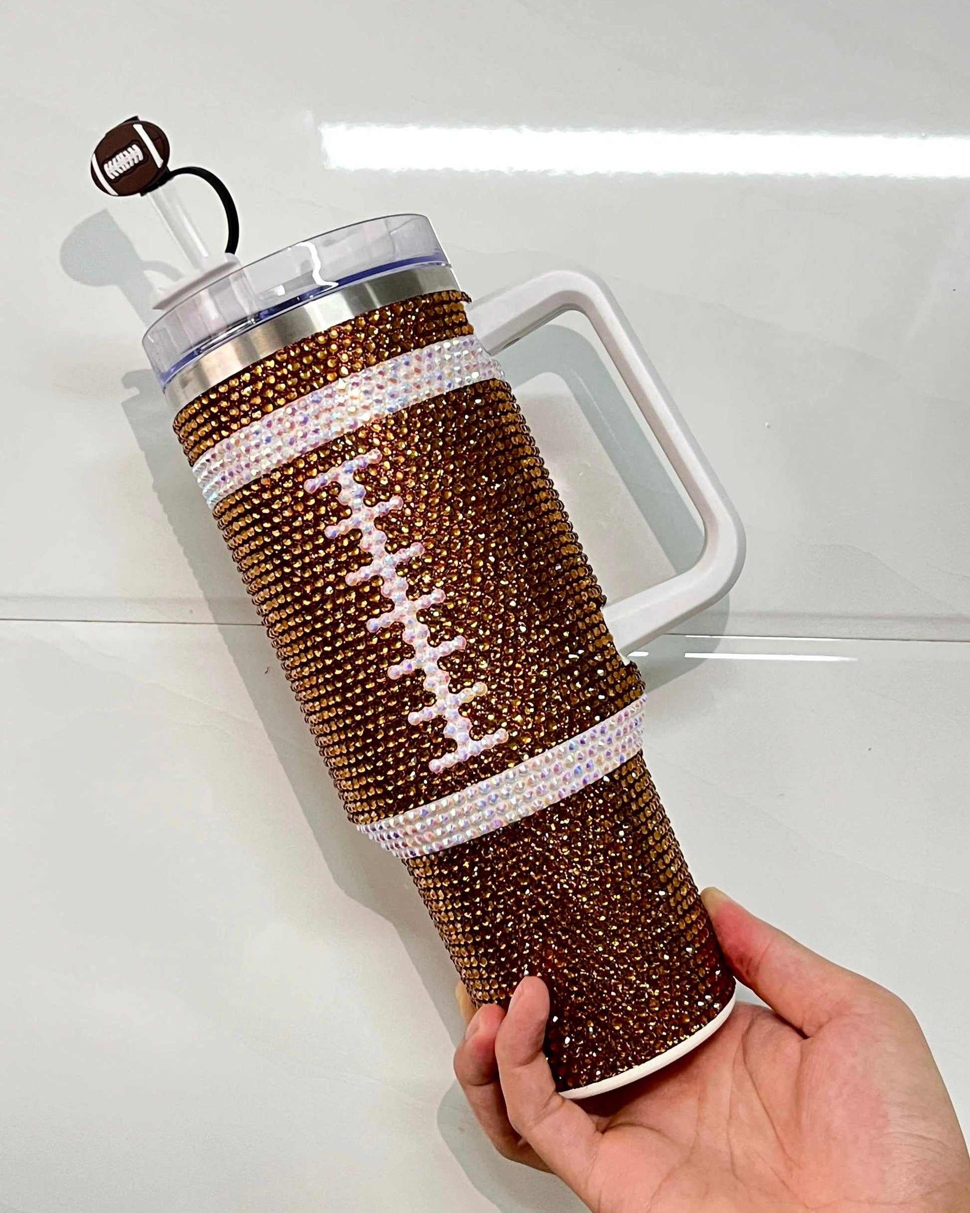 Brown Crystal Football "Blinged Out" 40 Oz. Tumbler