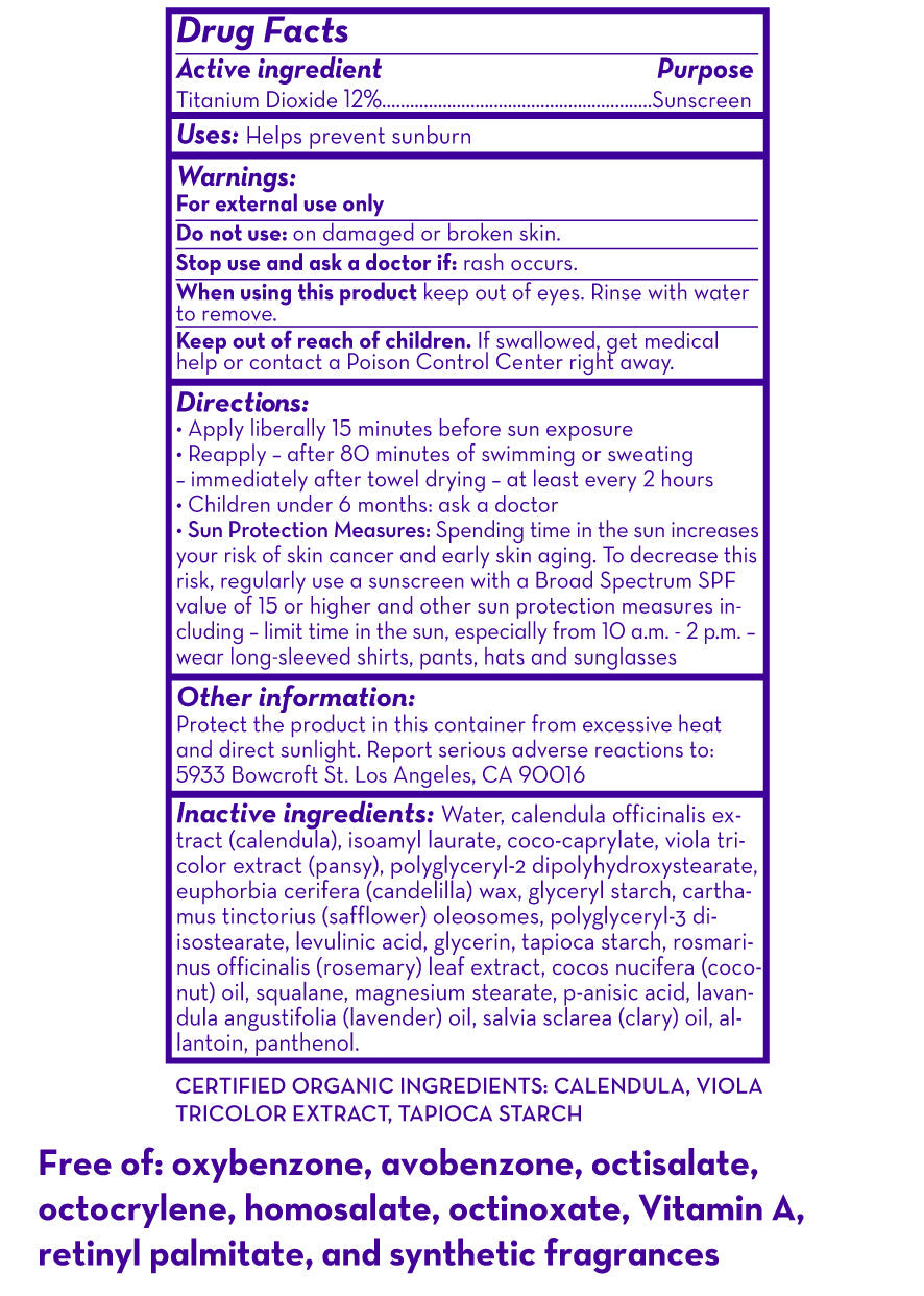 We combined the effectiveness of our award-winning mineral sunscreen formula with the soothing benefits of our Calendula products. Infused with a subtle essential oil blend of French lavender, clary sage, and calendula.
