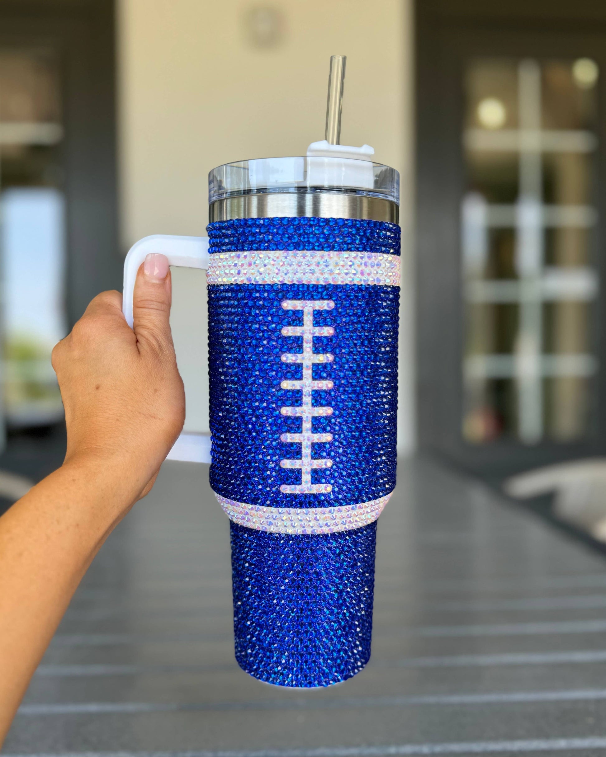 Crystal BLUE "Team Spirit" FOOTBALL 40 Oz. Tumbler