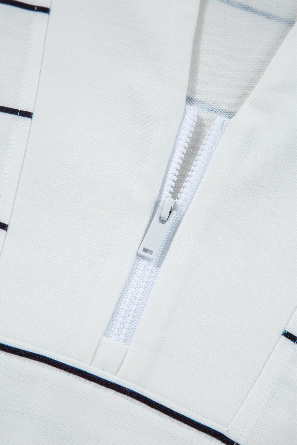 Fiery Red Striped Zipper V-Neck Drop Sleeve Top