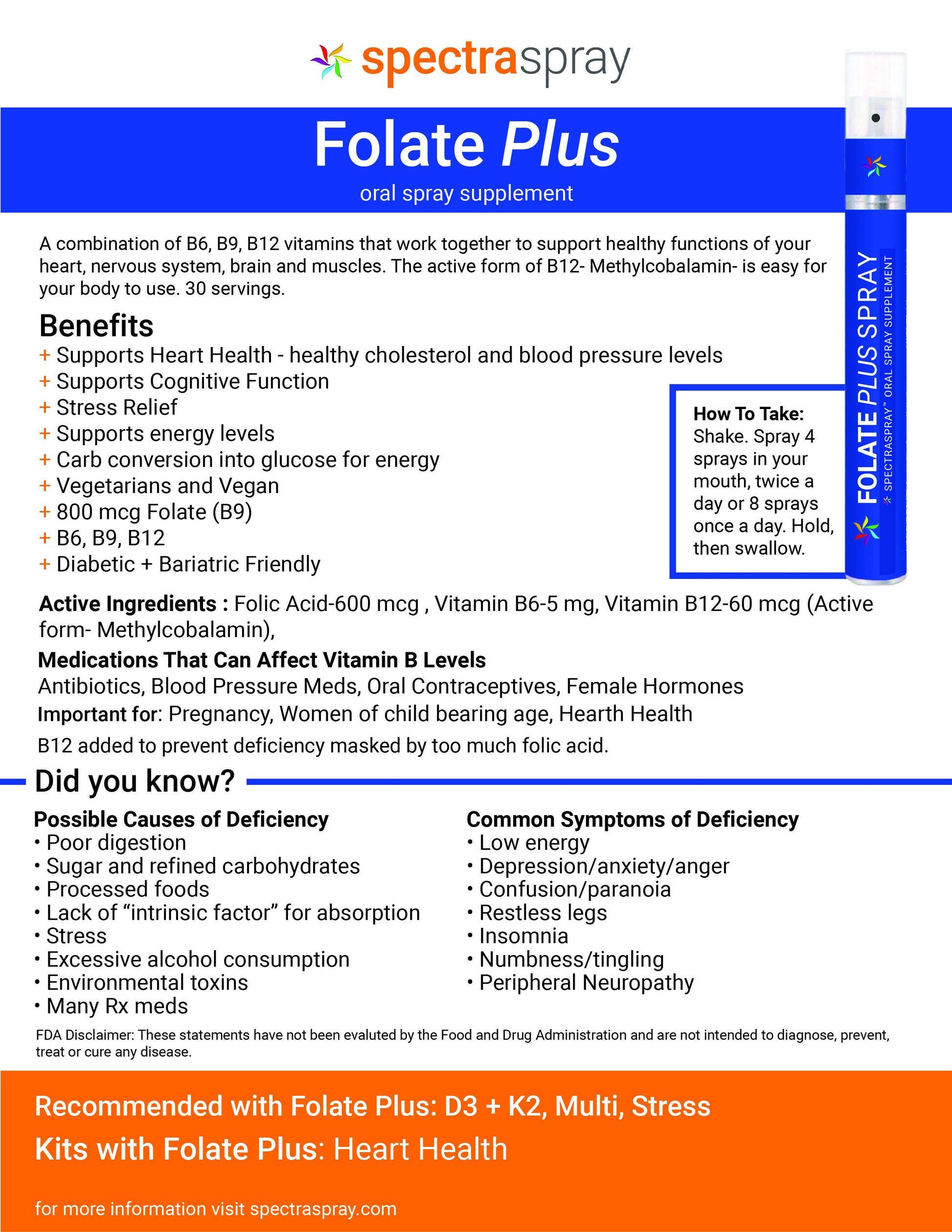 SpectraSpray™ FOLATE PLUS oral spray is an easy to use, vegan oral spray supplement that supports heart health, pregnancy, cognitive function, energy production, healthy cells and positive aging.