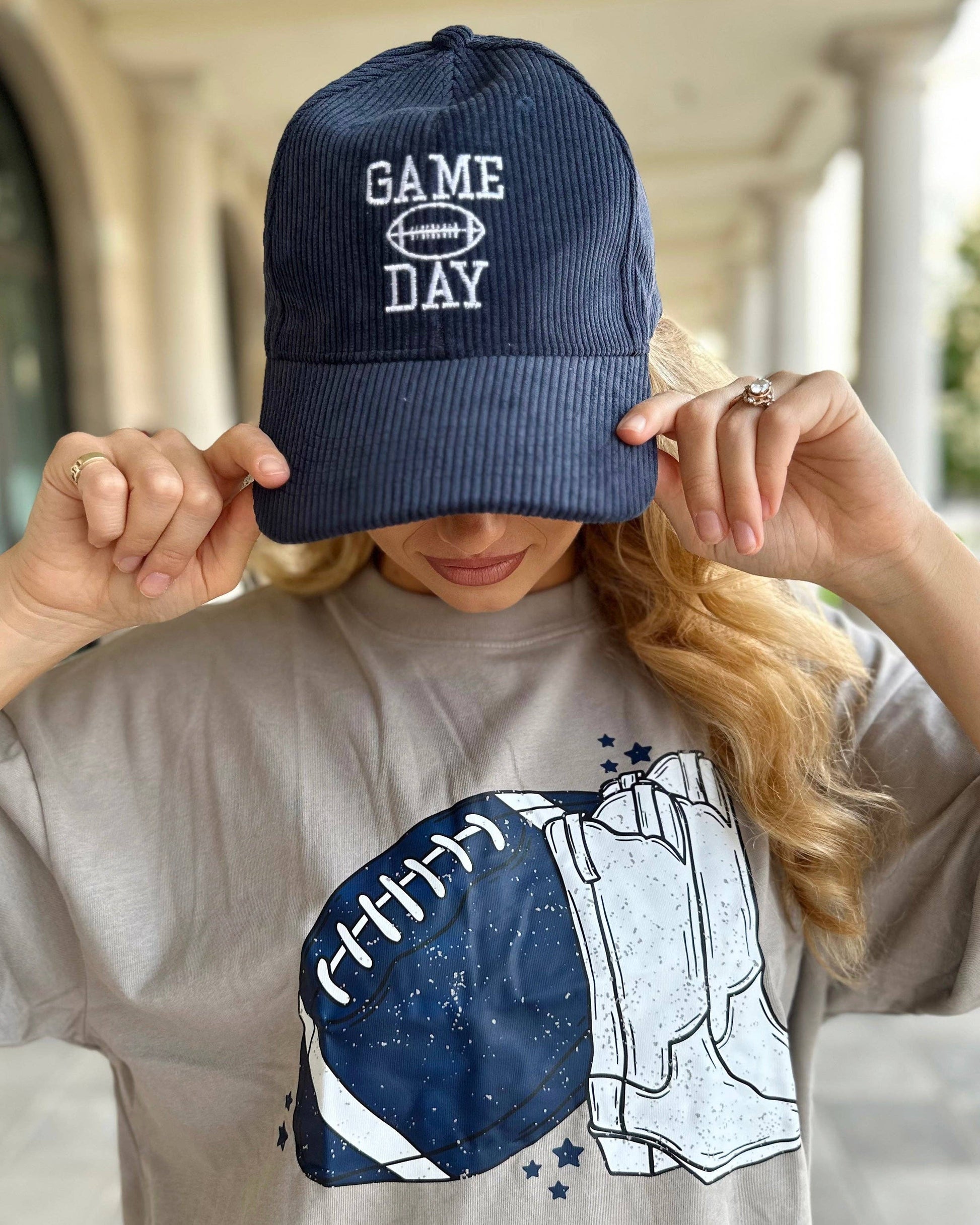 Navy Embroidered Corduroy “GAME DAY” Football Cap