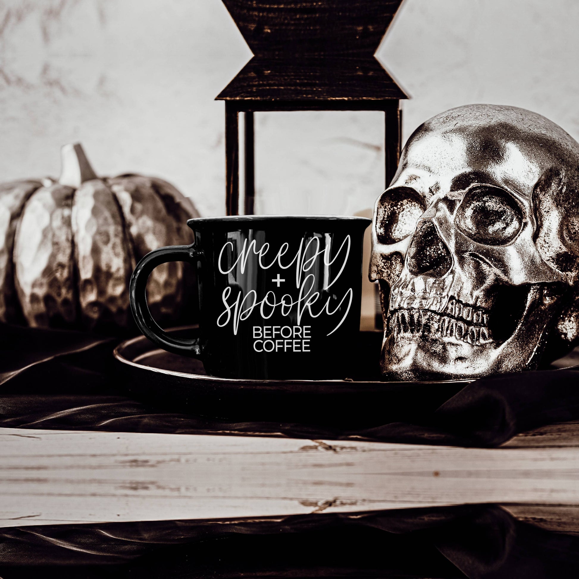 NEW VERY LIMITED EDITIONS SEASONAL MUGS View 3rd sample pic for all seasonal styles available in this mug size. Plain cardboard box with each mug included Many "funny" mugs also don't have style to them. These not only blend in w/ our other mug collection, but has a lovely minimalist aesthetic, with added seasonal Flare! Choose between several quotes and 2 mug colors. The gift that can't go wrong with any coffee lover who loves humor and fall / Halloween!