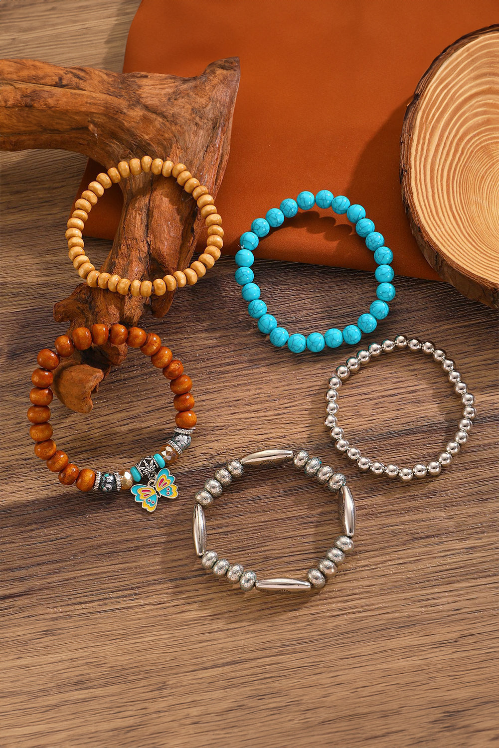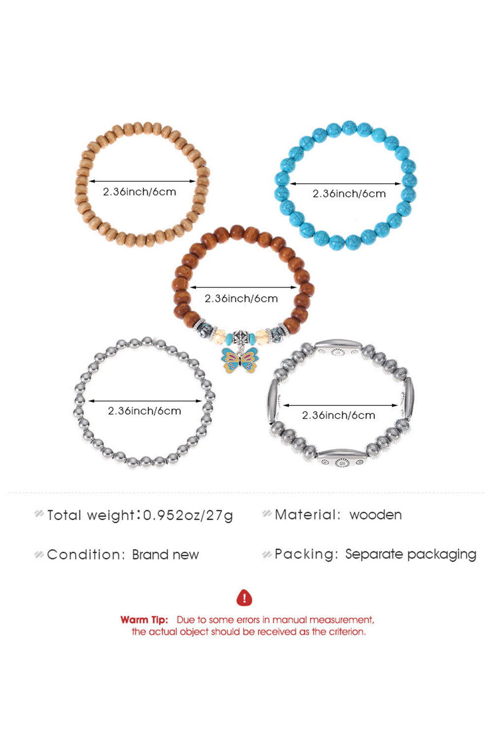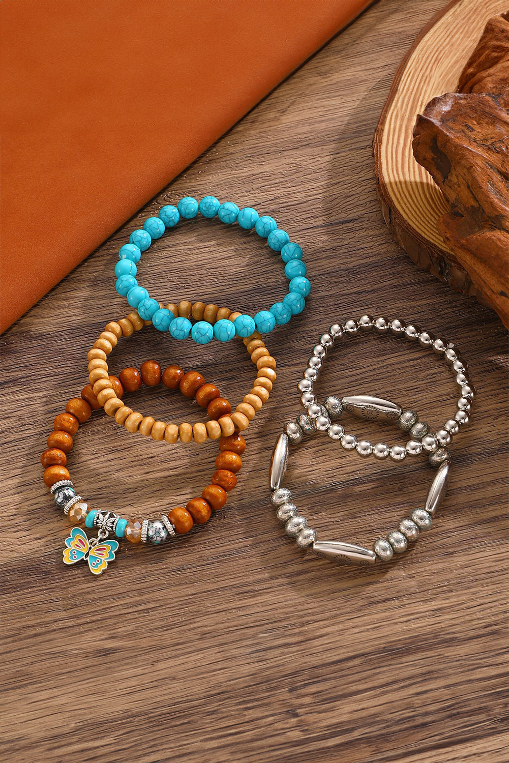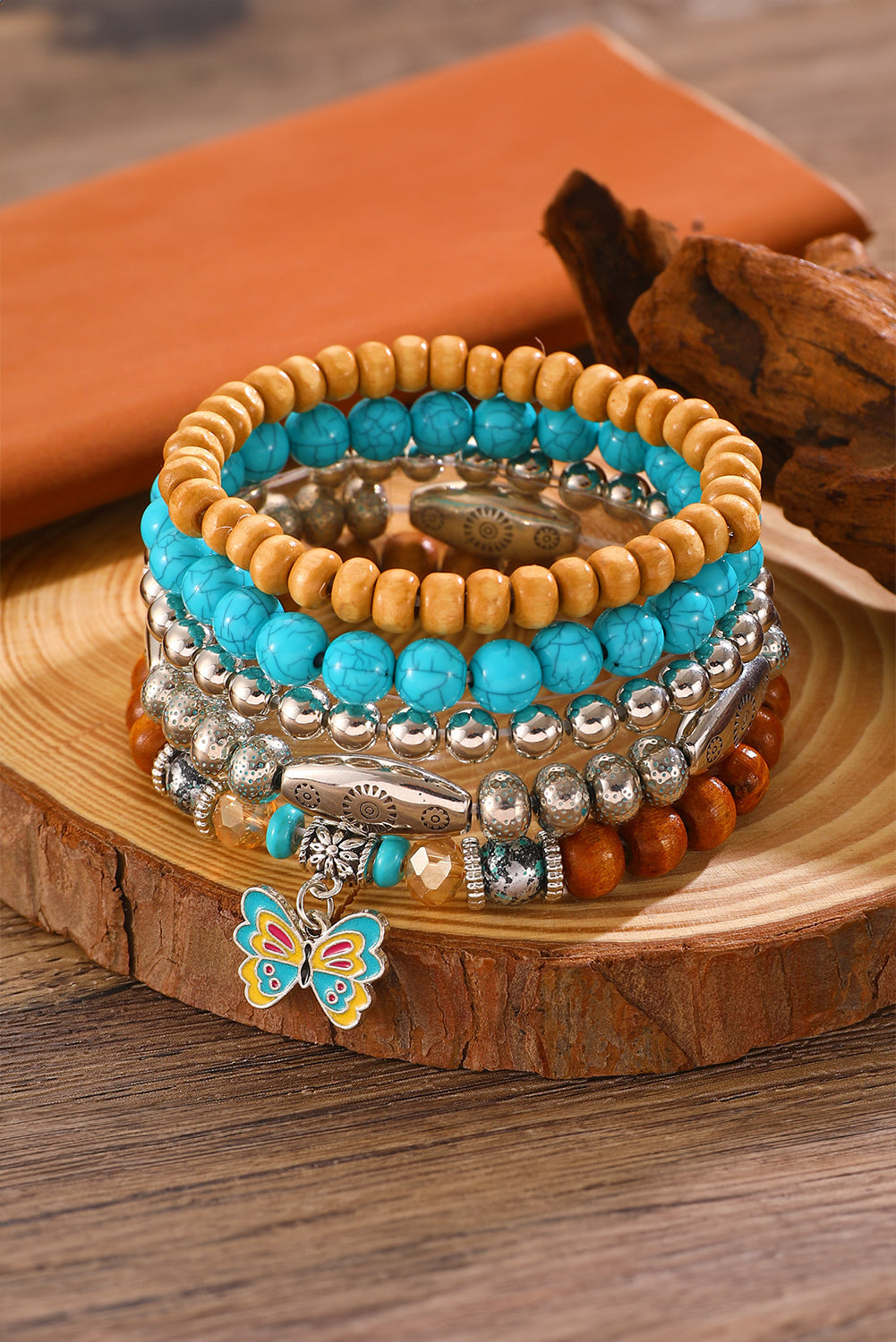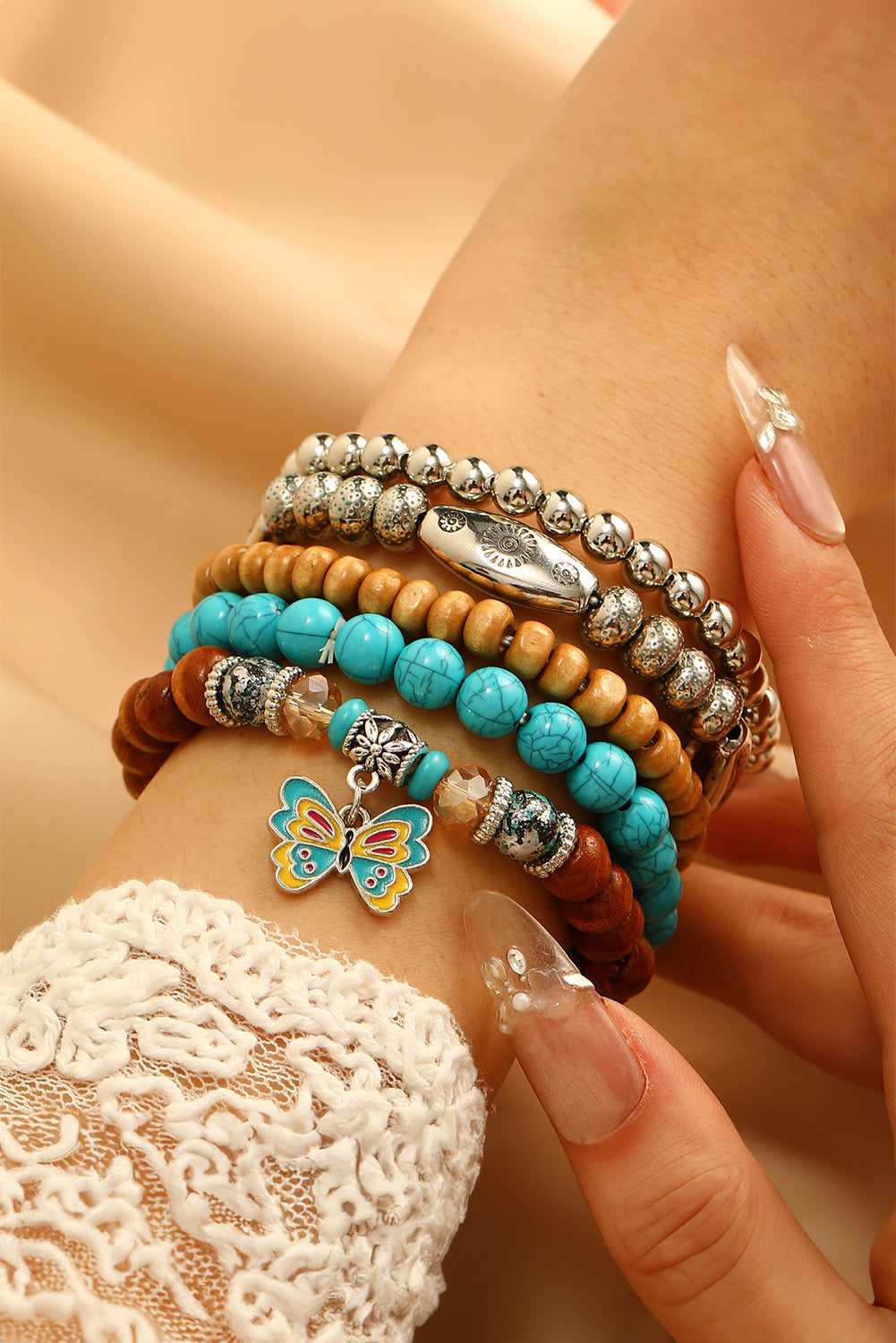 Silvery Boho Butterfly Pendant Beaded Bracelet Set