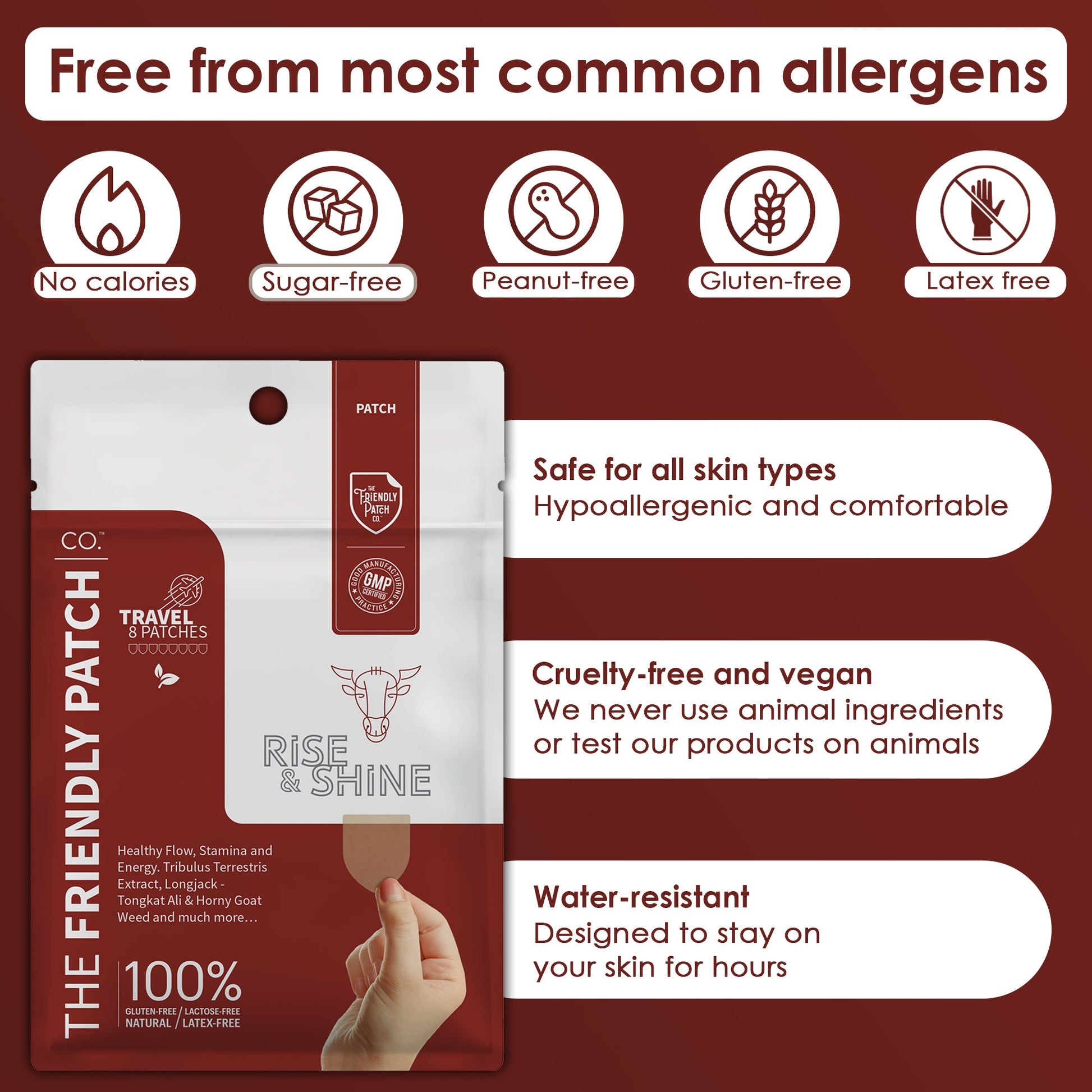 The benefits of using the patch format are numerous. The patch offers consistent and controlled dispatch of active wellness throughout the day. Bypassing the gut minimizes the risk of any upset discomfort that may arise with traditional routines, most of which are lost in the gut and never utilized. The Friendly Patch products are WERCSmart Certified. This 3rd party program represents a safety commitment to our customers and our environment. These plant-powered patches are made in USA.