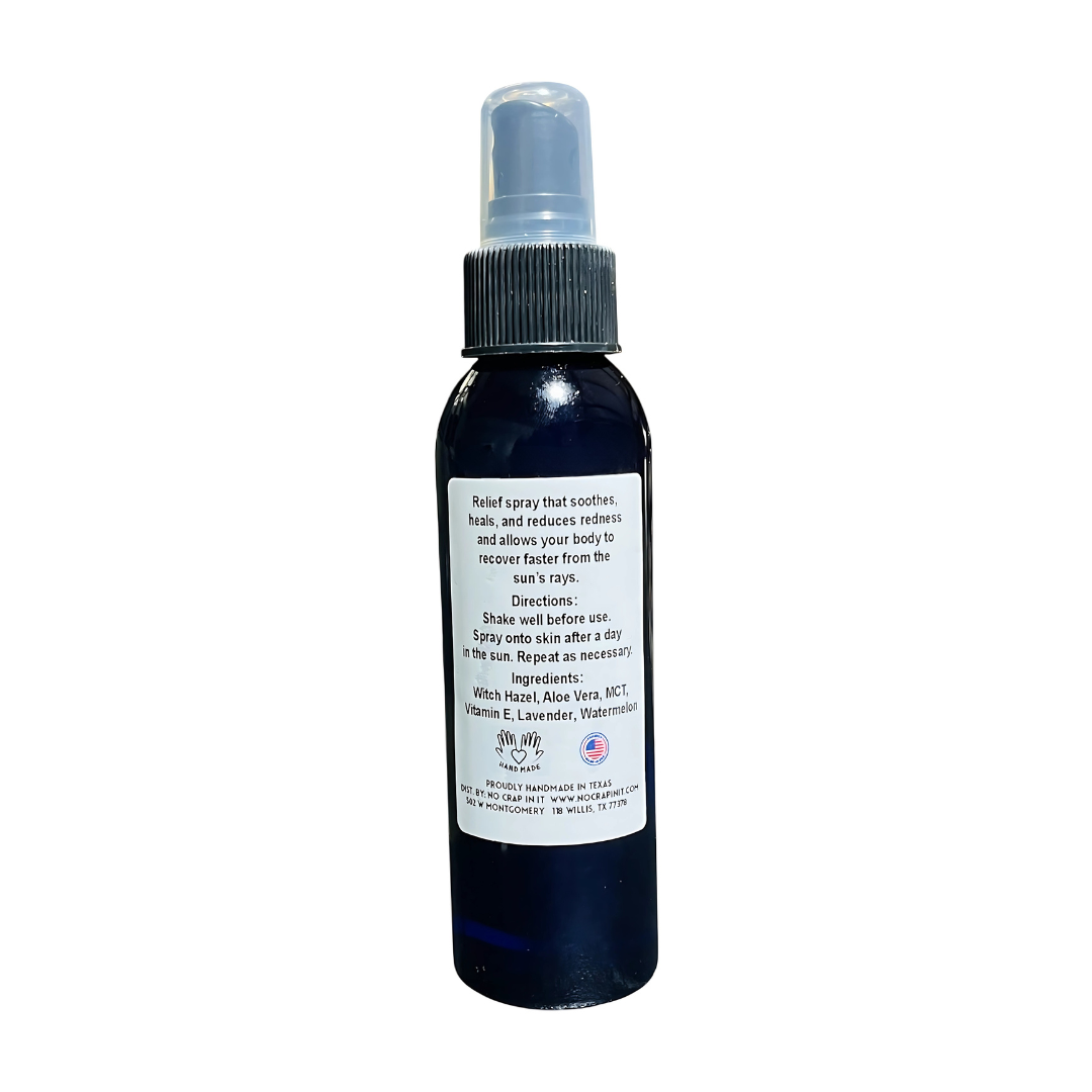 Looking for some quick relief from the pain of a sunburn? Our After Sun Spray restores and rehydrates your skin from the sun rays while soothing and providing relief from the burn.