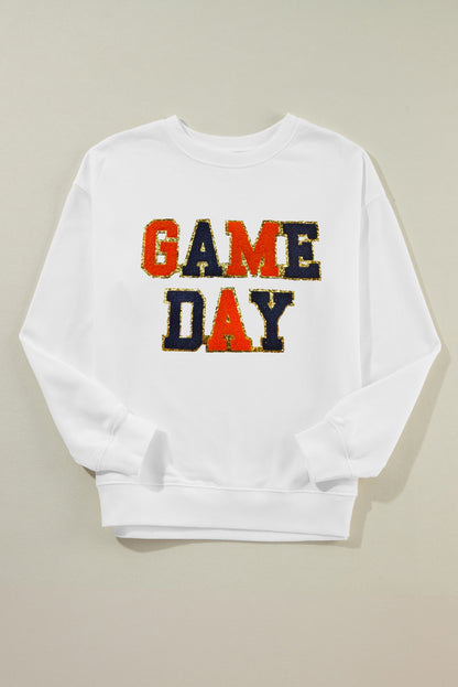 White Chenille GAME DAY Letter Round Neck Sweatshirt